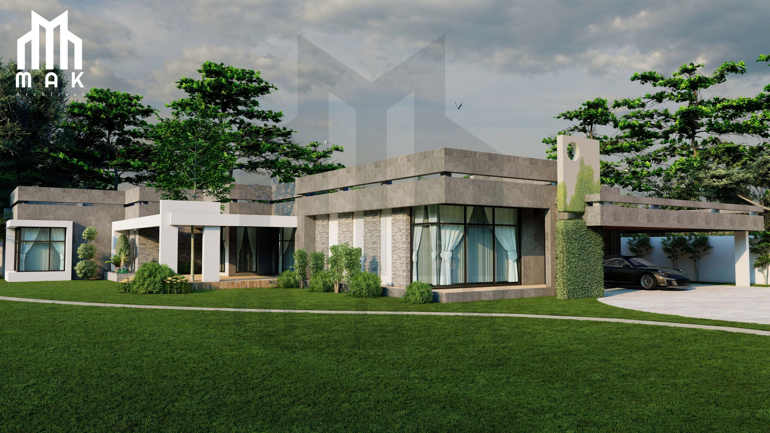 The design concept of the house is to create a contemporary living space that is both aesthetically pleasing and functional. The house boasts a stunning façade, which is a mix of concrete and glass elements. This creates an open and airy feel, allowing for ample daylight to flood the interior spaces. The house has an open floor plan with large double glazed windows, which helps with natural ventilation and provides beautiful views of the surrounding landscape. The architects have put a great deal of effort into ensuring that the house not only looks good, but is also very practical. The interior spaces are designed to maximize the available square footage and provide a comfortable living experience for the occupants.