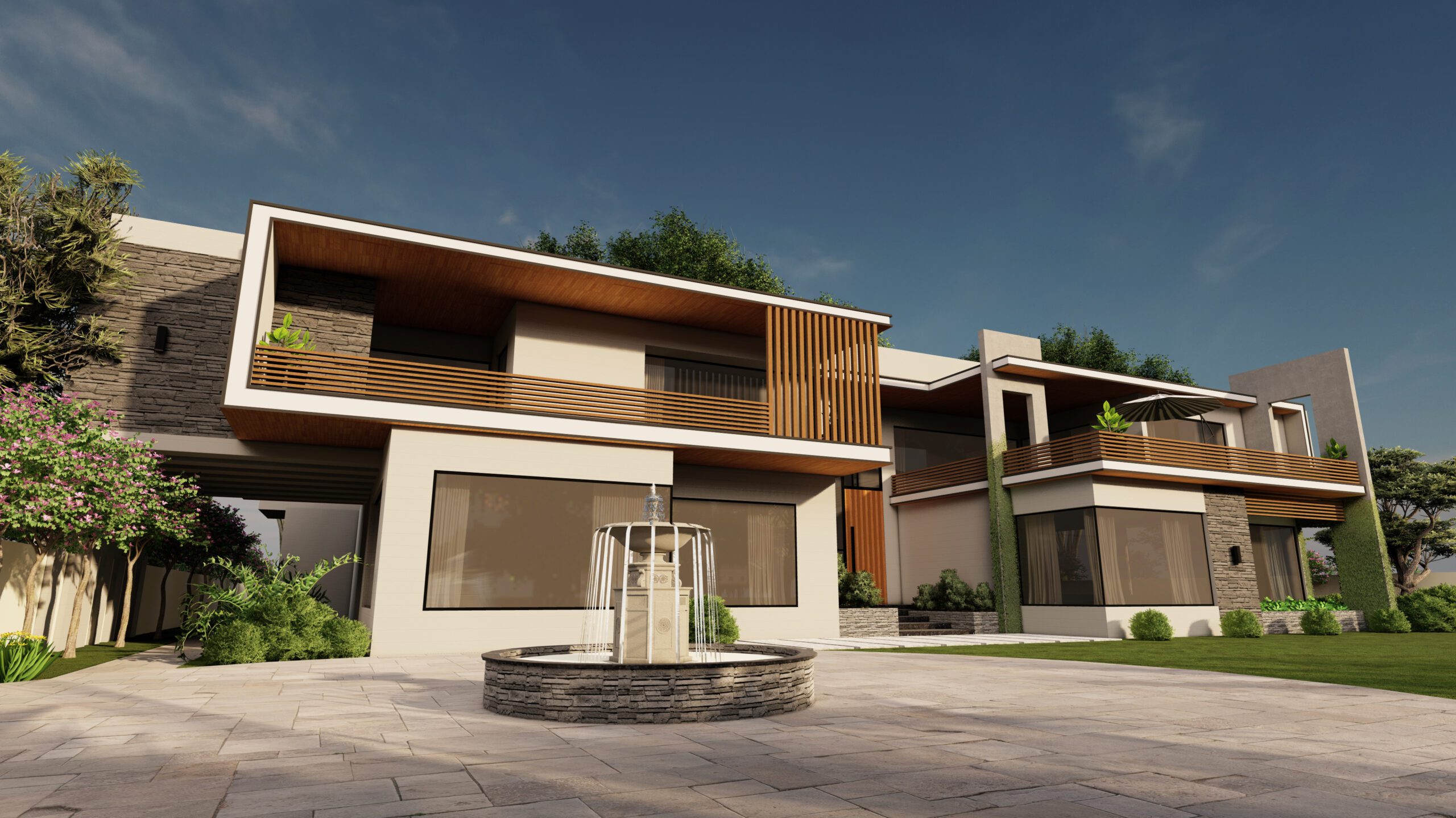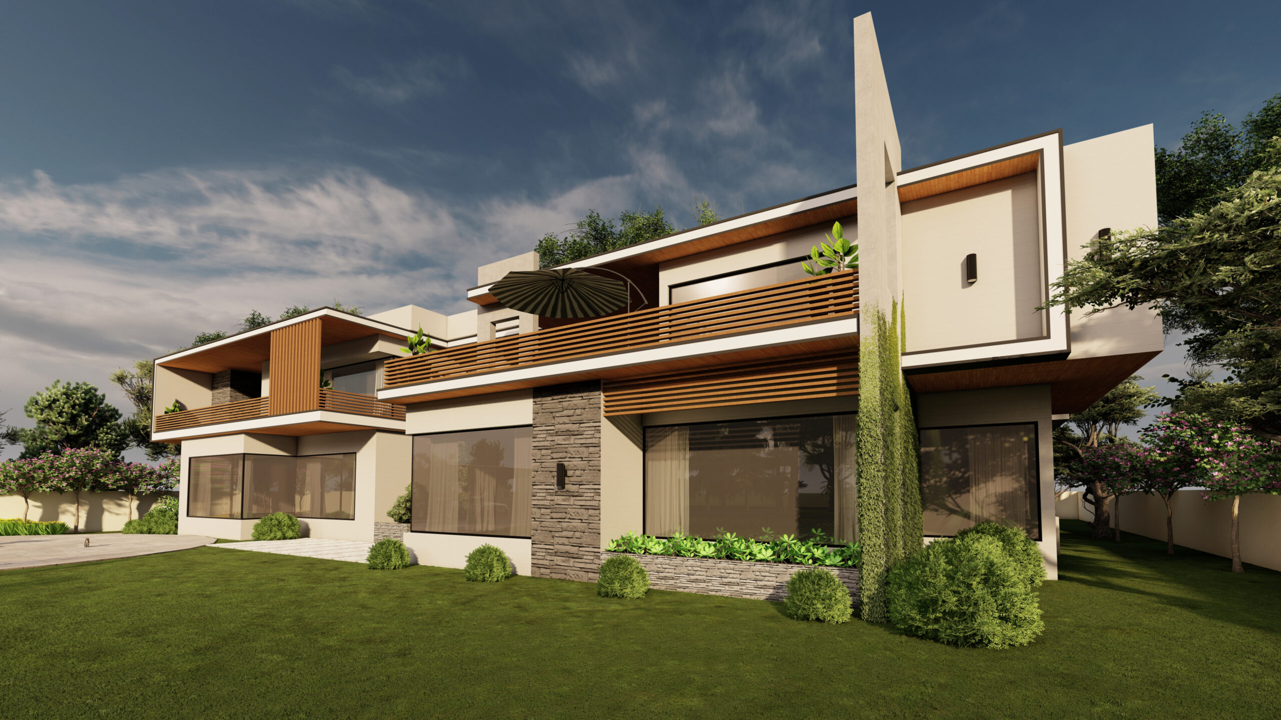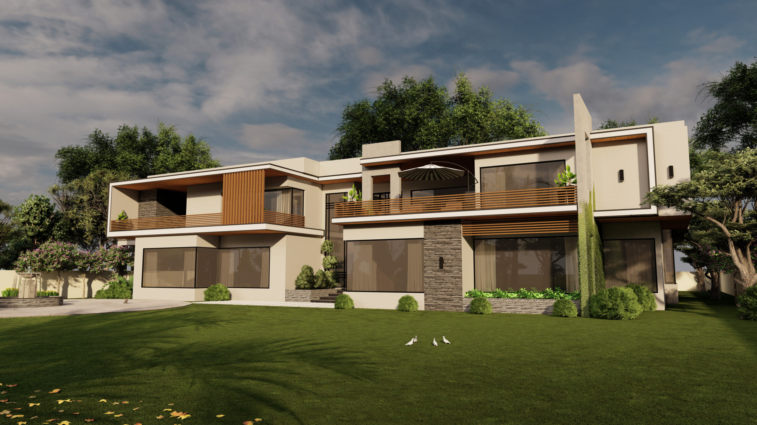 4 KANAL HOUSE DESIGN boasts a sleek and minimalistic exterior, featuring clean lines that are complemented by a muted color palette. The use of floor-to-ceiling windows creates a sense of openness and transparency, allowing natural light to flood the interior and further emphasizing the contemporary vibe.